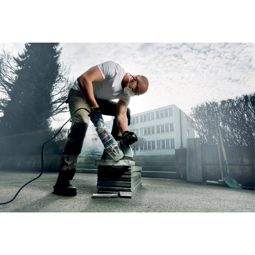 При отрезных работах комфорт обеспечивает главная рукоятка, монтируемая в трех позициях. Установка защитного кожуха выполняется без инструмента; фиксация с защитой от проворачивания. Среди преимуществ также электронный плавный пуск, который предотвращает рывки при включении инструмента. Отключающиеся угольные щетки выступают в качестве защиты двигателя.