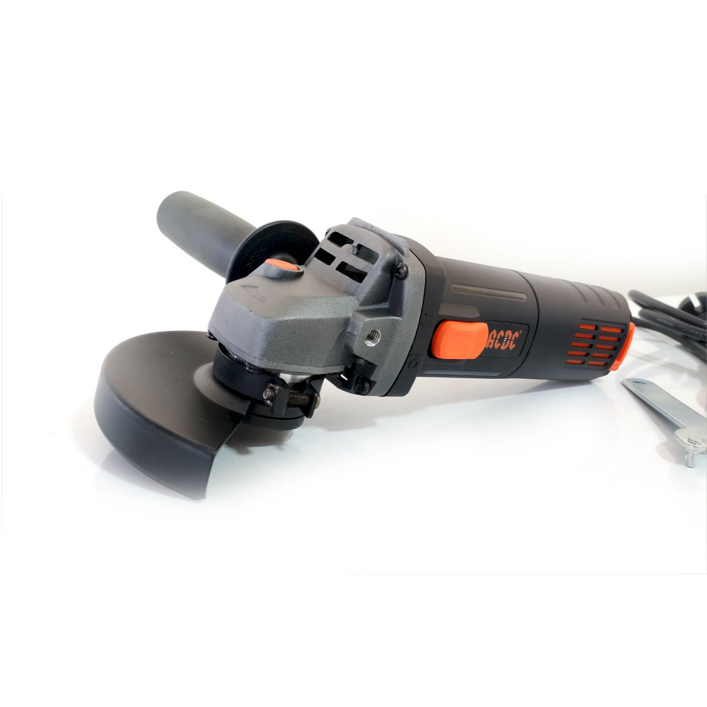 Угловая шлифовальная машина (болгарка) ACDC УШМ-125/1050 используется для зачистки, шлифования поверхности, резки материала. Укомплектована электрическим двигателем мощностью 1.1 кВт для надежной производительной работы. Вытянутый корпус обеспечивает более удобное удержание инструмента во время работы. Удобный ползунковый выключатель. Дополнительная боковая рукоятка с возможностью фиксации в двух положениях. Металлический корпус редуктора и качественные комплектующие позволяют увеличить срок эксплуатации инструмента. На корпусе находятся вентиляционные отверстия для защиты рабочего механизма от перегрева. Для быстрой и безопасной замены рабочей оснастки предусмотрена кнопка блокировки шпинделя.