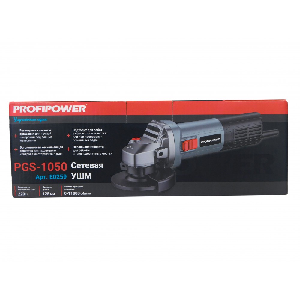 Угловая E0259 шлифмашинкаPGS-1050R (1050Вт,125мм, 0-11000об/мин,с регулировкой обор ProfiPower