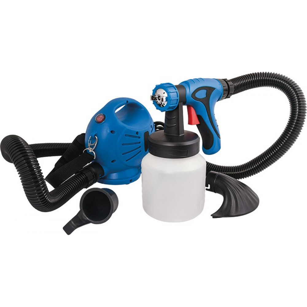 Электрический краскопульт с нижним баком и гибким шлангом. Краскопульт предназначен для нанесения всех видов лакокрасочных материалов. Не требует компрессора, работает от сети 220 В.