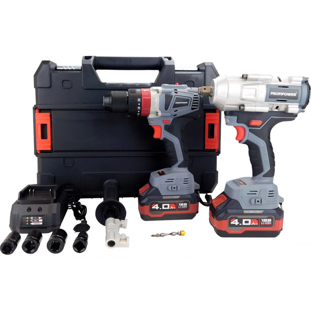 - Аккумуляторная бесщеточная ударная дрель-шуруповерт PROFIPOWER MKDHP-18V