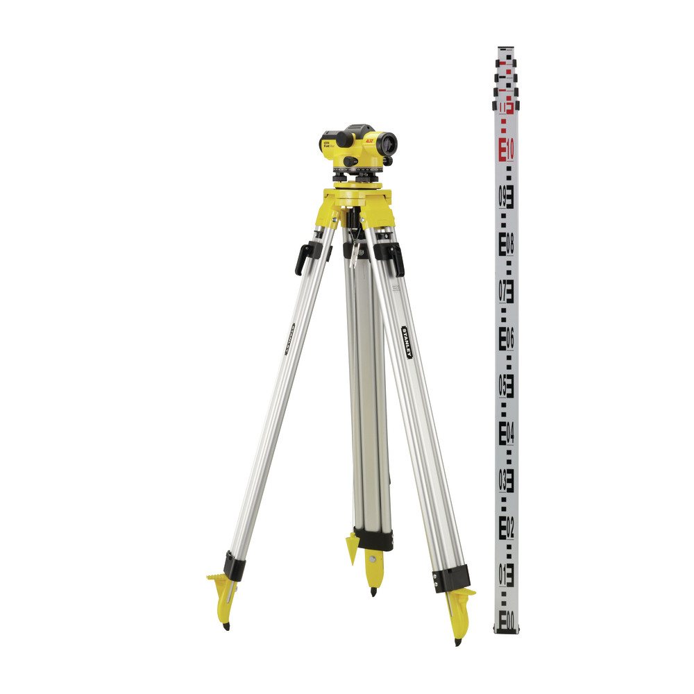 Оптический нивелир 1-77-244 AL32 FATMAX от STANLEY также оснащен специальной призмой для регулирования точности круглого уровня, а в комплекте с ним идут алюминиевая тренога для установки и 5тиметровая рейка.