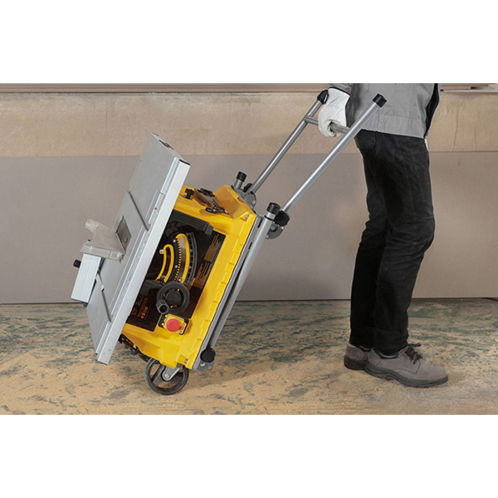 Выходная мощность двигателя достаточна для распиливания сырой и промерзшей древесины. Комбинация из зубчатой направляющей и параллельного упора с четкой шкалой делает этот высокоточный инструмент очень простым в применении. Пильный узел двигается вверх-вниз по полозьям внутри металлического короба. Стол из алюминиевых листов толщиной 3,5 мм подогнан аккуратно, регулируется по ширине (ширина раскроя до 640 мм). Сверхпрочные колеса для перемещения станка по неровностям стройплощадки. Интегрированные опорные стойки позволяют организовать рабочее место в любой точке строительного объекта.