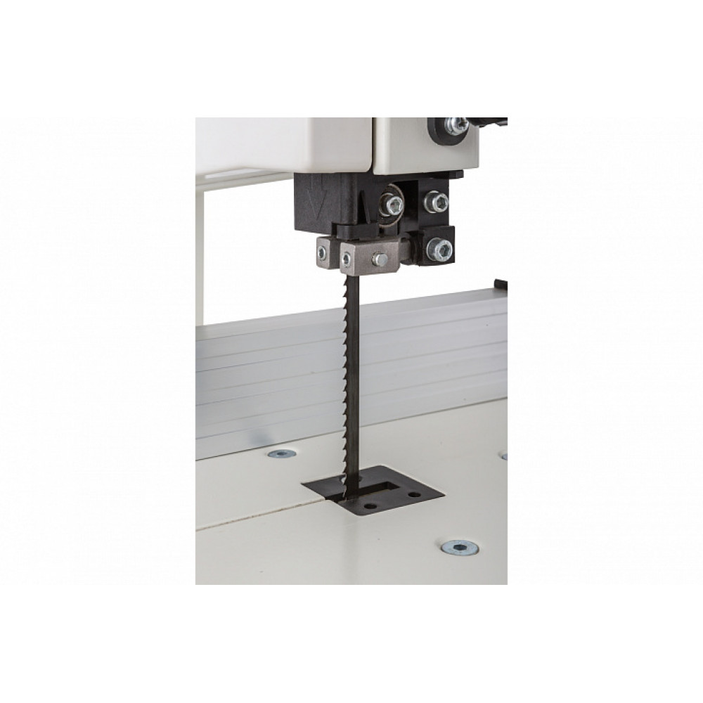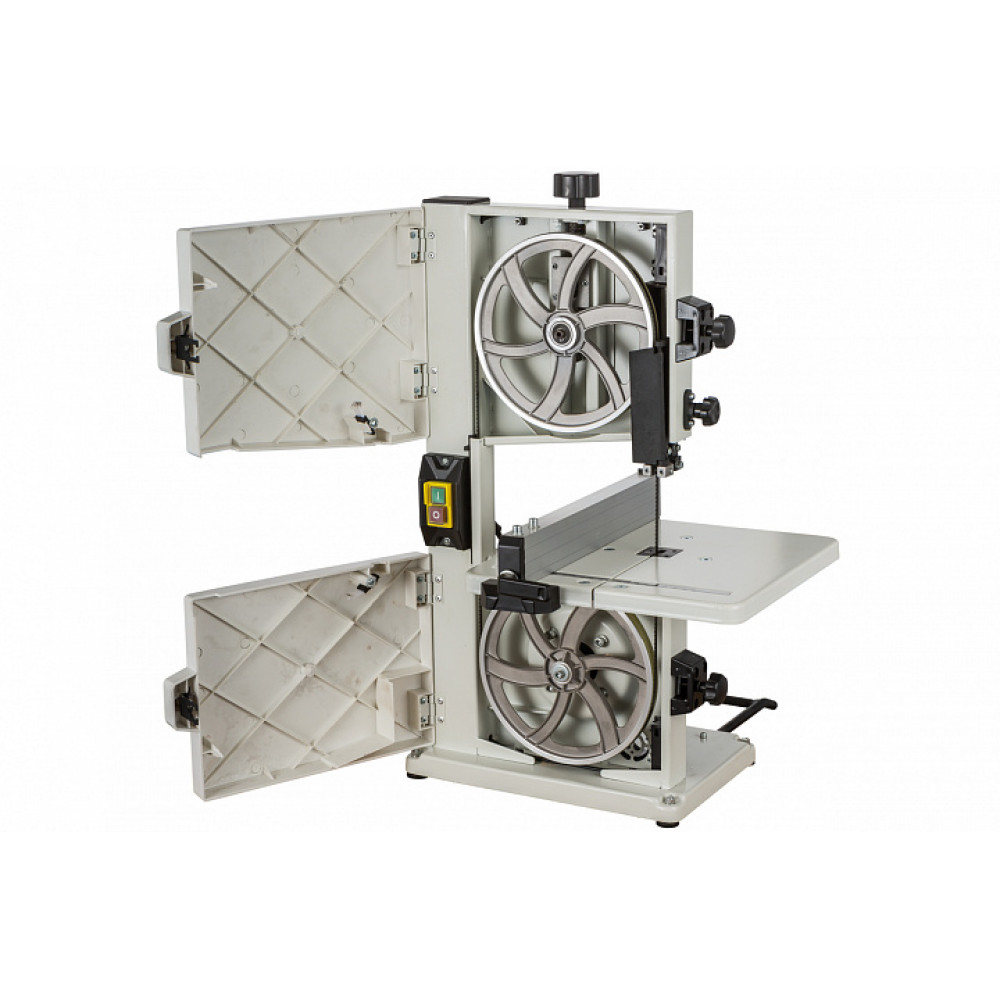 Если вам необходим станок для хобби или редких работ по дому, гаражу или хозяйству, то ленточная JWBS-8-M пила, 230 В – отличный вариант для этих целей. Компактный ленточнопильный станок устроен очень рационально, что позволило реализовать все стандартный функции ленточной пилы, не усложняя конструкцию. Ведущий шкив диаметром 210 мм расположен на вале двигателя, делает 1420 оборотов в минуту, поэтому понижающий редуктор не требуется. Направляющие полотна выполнены в виде цилиндрических шрифтов, удерживающих ленту своими торцами.