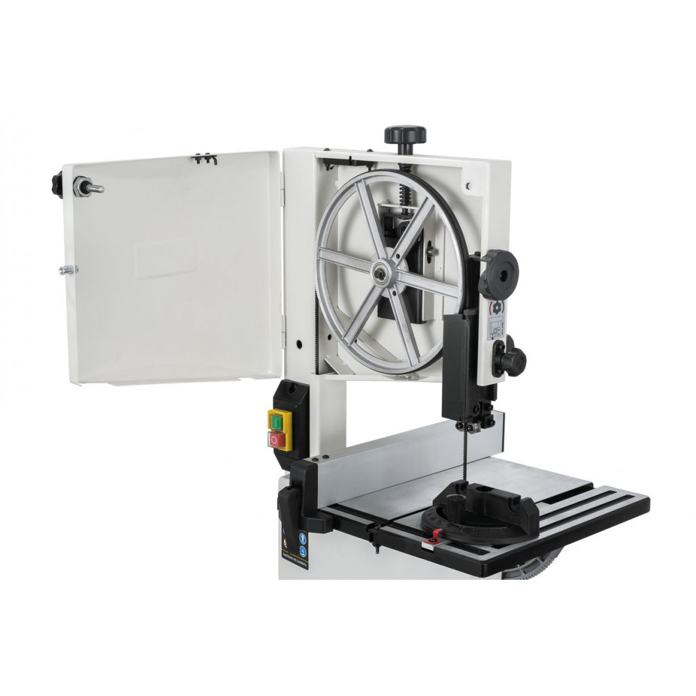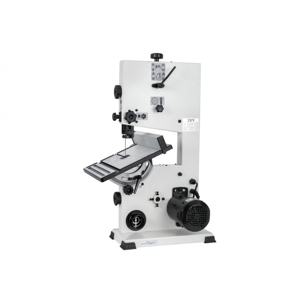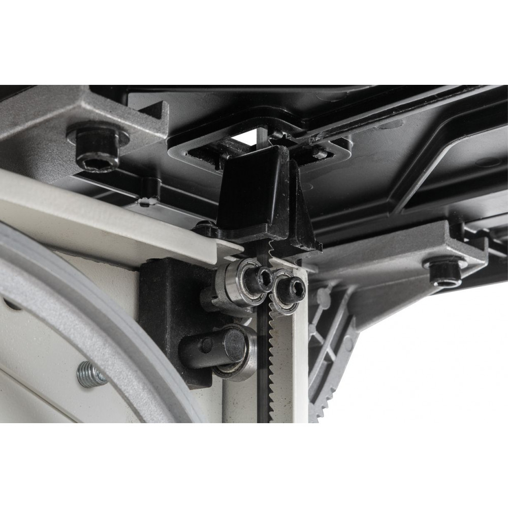 JWBS-9S – настольный ленточнопильный станок для частного любительского применения. Позволяет распускать заготовки толщиной до 90 и шириной до 225 мм. Укомплектован трехроликовыми направляющими с шарикоподшипниками, обеспечивающими легкое движение ленты, минимальный износ и простоту регулировки. Ведущий шкив приводится во вращение через зубчато-ременную передачу, а не установлен непосредственно на валу двигателя, как часто делают для упрощения конструкции. Такая разнесенная схема дает более плавное без биений вращение и лучшую ремонтопригодность.