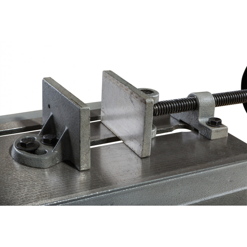 Недостатки: Субъективно-хотелось бы чуть помясистее чугун на ноге с шарниром через которую пила соединяется с основанием и на самом основании но это лично мое ощущение.Так же не помешала бы разметка на тисках для распила под углом.Хотя бы одну риску поставили чтоб 90 градусов выставить но ничего нет хотя возможность изменять угол распила есть.Ну и ключик могли бы за 39тыс.положить чтоб гайку откручивать которая диск прижимает.