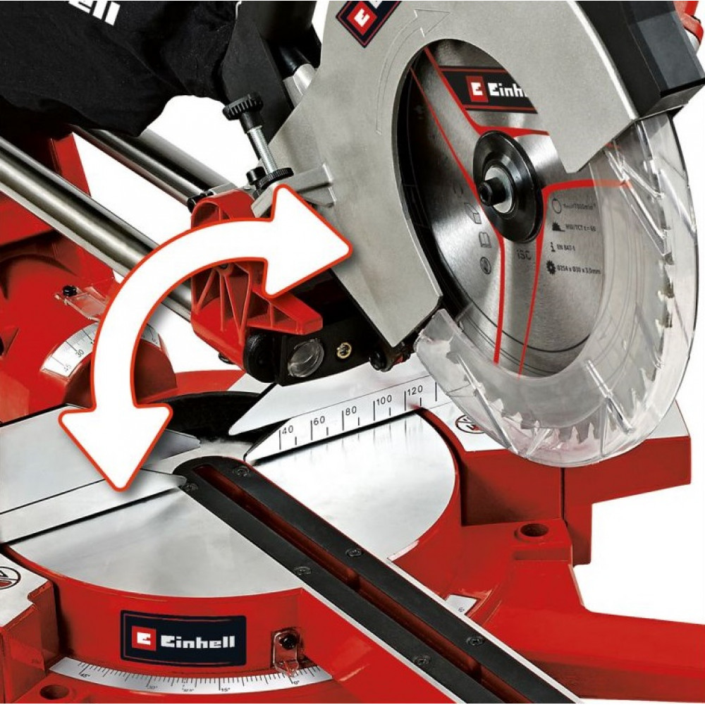 Торцово-усорезная пила TE-SM 2534 Dual от бренда Einhell с протяжкой является универсальным инструментом для обработки древесины, ламинатных панелей и пластика. Благодаря возможности наклона пильной головки влево и вправо, увеличивается функциональность инструмента. Встроенный лазер помогает точно направлять линию реза, предотвращая ошибки в работе.