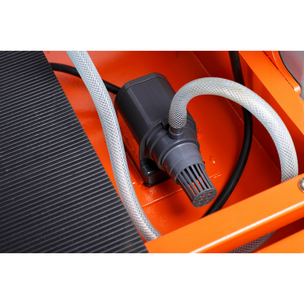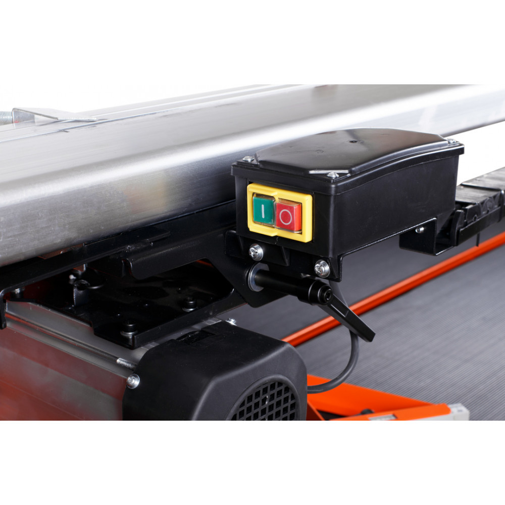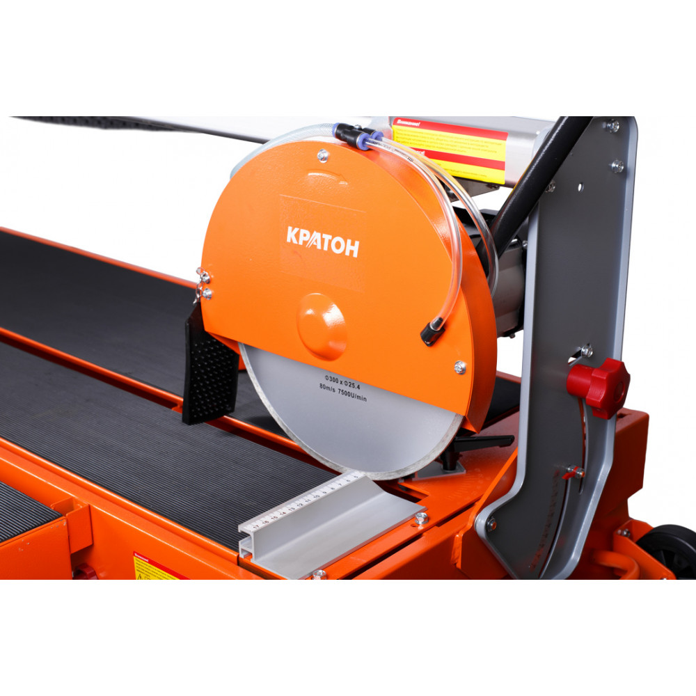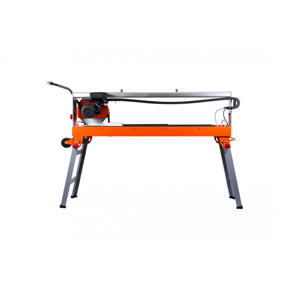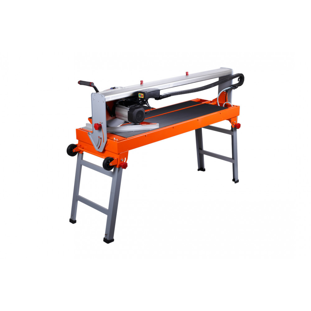 Данная модель позволяет выполнять пропил под углом до 45 градусов. Верхнее расположение двигателя обеспечивает высокую точность распила плитки до требуемых размеров. Предусмотрена система водяного охлаждения оснастки, при которой достигается максимальный срок эксплуатации алмазного диска. Для размещения обрабатываемых изделий предусмотрен рабочий стол размером 1250х460 мм. Станок имеет прочный параллельный упор.