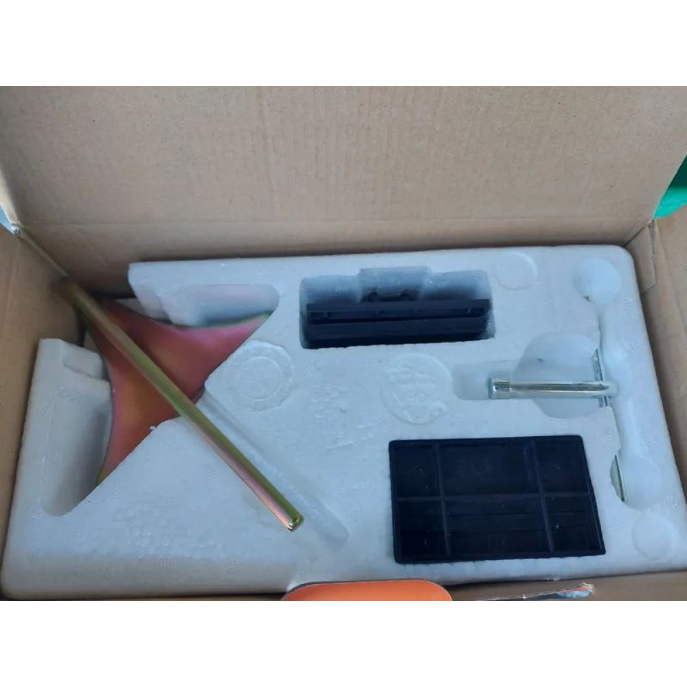 В комплект поставки входит сам агрегат, боковой направляющий упор, оснастка жля заточки ножей, оснастка для установки ножей, ключ, дополнительные щетки электродвигателя, инструкция на русском.