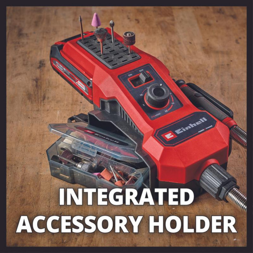 Аккумуляторный гравировальный инструмент Einhell TE-MT 18/34 Li-Solo - верный помощник при выполнении различных работ, таких как гравировка, полировка, фрезерование, шлифование, резка и зачистка. Он входит в семейство комбинированных инструментов Power X-Change. Точная регулировка частоты вращения осуществляется для различных задач. Фиксирующая ручка обеспечивает простую и удобную смену инструмента. Оптимальные результаты достигаются благодаря штифту на гибком валу длиной 92 см. Станция оснащена держателем для принадлежностей, ящиком для принадлежностей, ремнем для переноски, настенным кронштейном и прорезиненными ножками. Поставка включает 55 шт. принадлежностей. Поставляется без аккумулятора и зарядного устройства (приобретается отдельно)