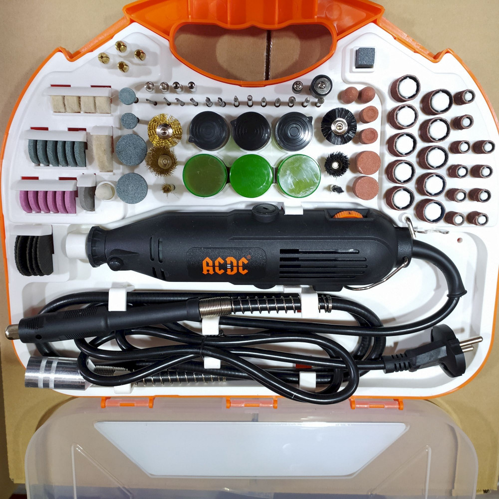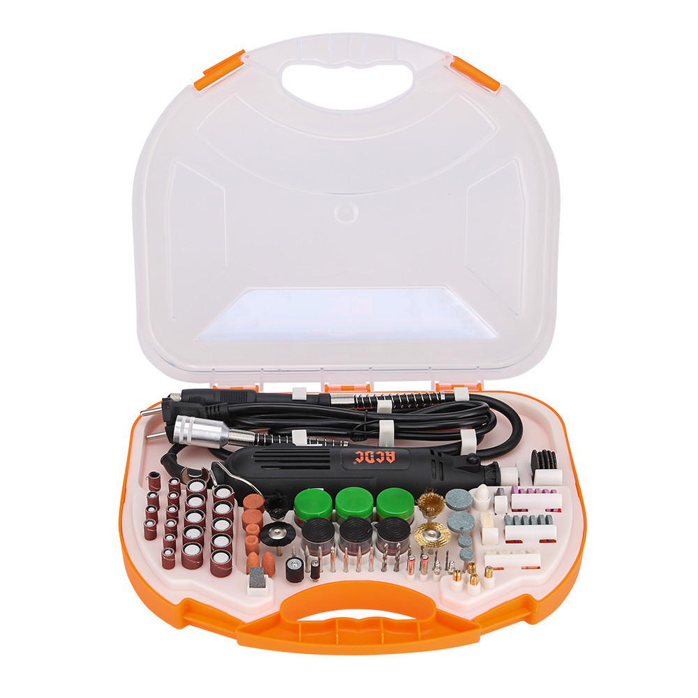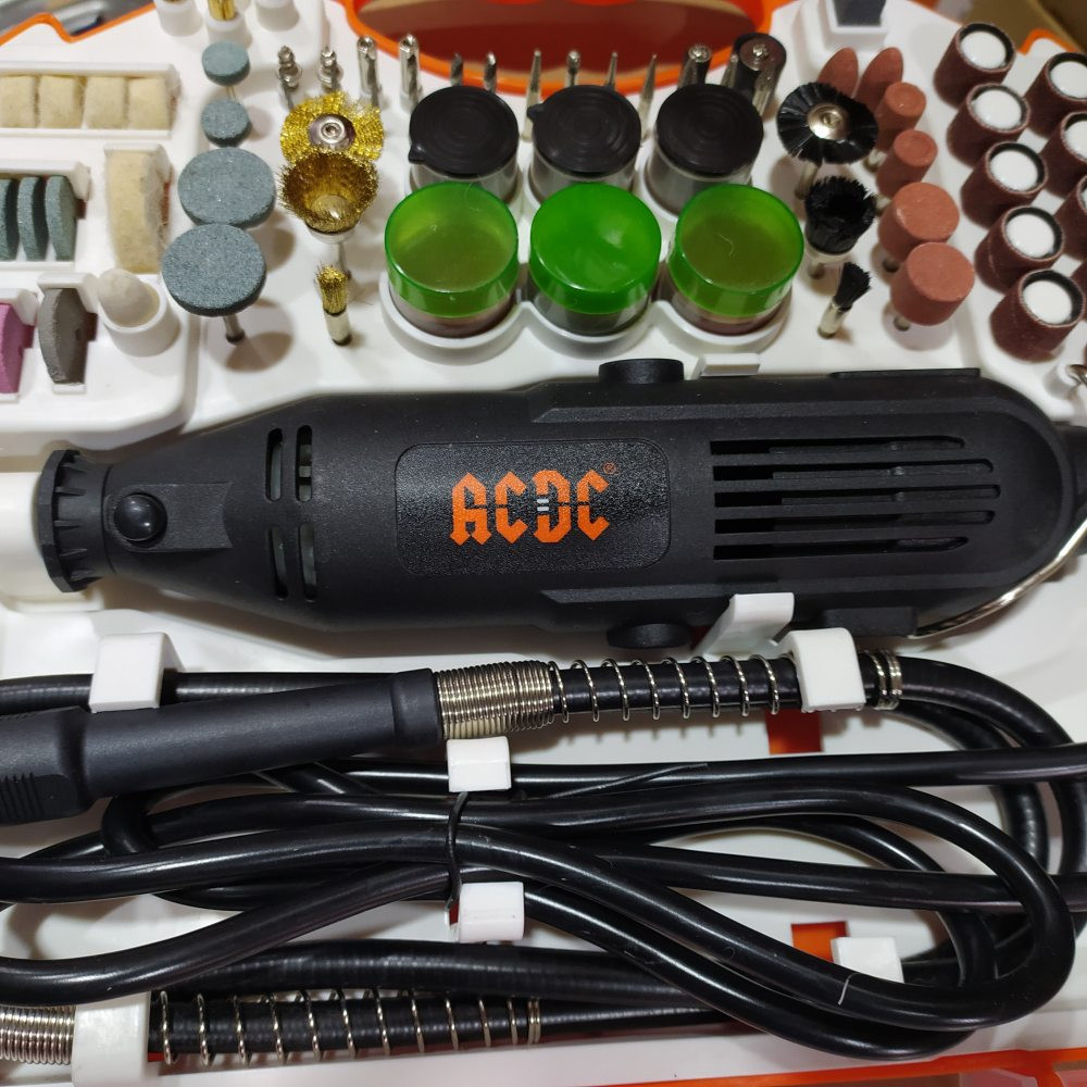 Гравировальная машинка T0033 предназначена для выполнения различных бытовых нужд: зачистки, шлифования, резки. Для работы в труднодоступных местах предусмотрен гибкий вал. Имеется регулятор оборотов 8000-30000, который позволяет интенсивно работать с инструментом продолжительное время. Комплектуется большим набором аксессуаров: патроны 2,4- 3,5 мм; набор насадок 90 шт.; прозрачный ударопрочный кейс. Также смотрите видеообзор данной модели на нашем YouTube канале ALET: