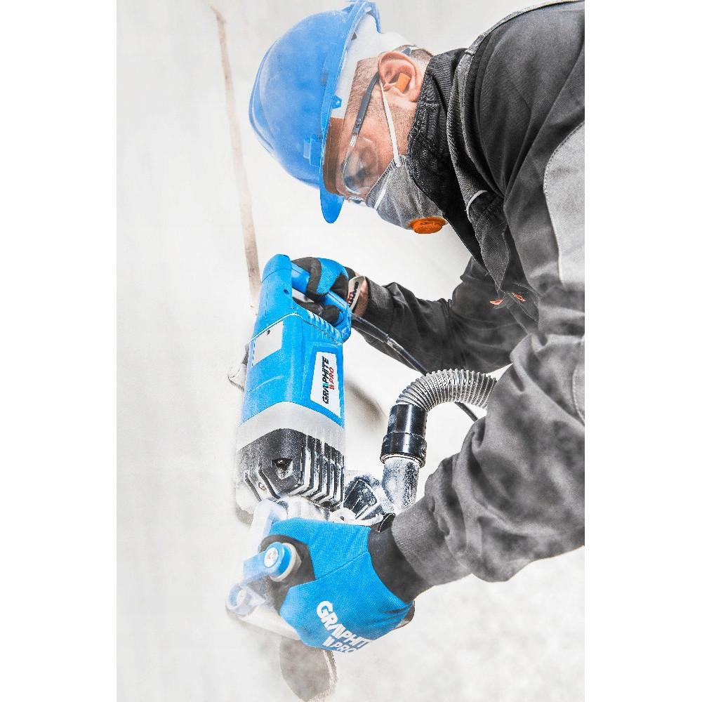 Штроборез 59GP300 от TM GRAPHITE мощностью 2400 Вт характеризуется высокой производительностью и, как правило, применяется для электромонтажных и сантехнических работ. Представленная модель оборудована системой плавного пуска и простым в использовании переключателем. Для комфортной работы штроборезом производители оснастили его встроенной системой пылеудаления.