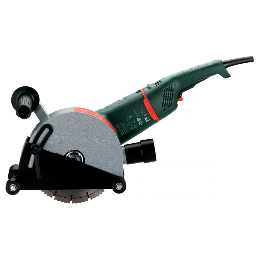 Инструмент работает на системе Metabo VibraTech (MVT): встроенная амортизационная система для снижения вибраций. Имеется возможность подключения строительного пылесоса Metabo, благодаря чему рабочее место всегда находится в чистоте. Необходимо отметить электронное аварийное выключение двигателя при блокировке диска.