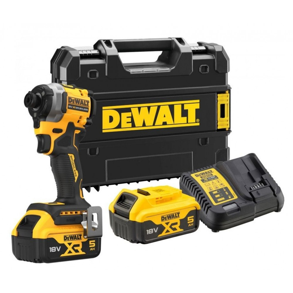 Шуруповёрт DCF850P2T-QW импульсный бесщеточный, 1/4", 18В XR 2х5 А/ч в кейсе TSTAK DEWALT