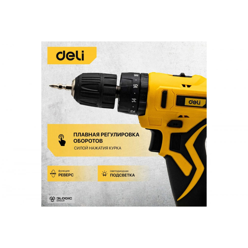 Шуруповёрт DL-CZ20-E1D2 аккумуляторный 20В, 2 А/ч DELI