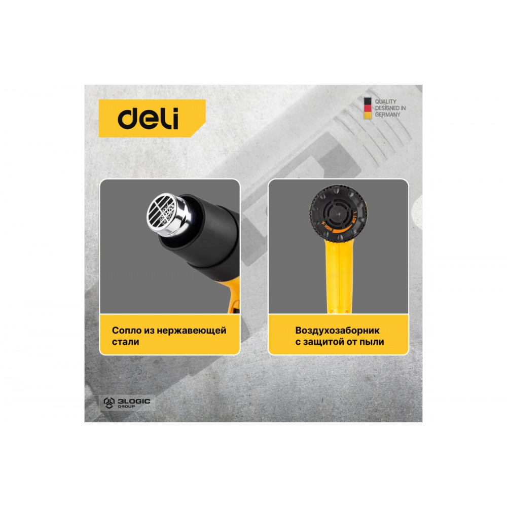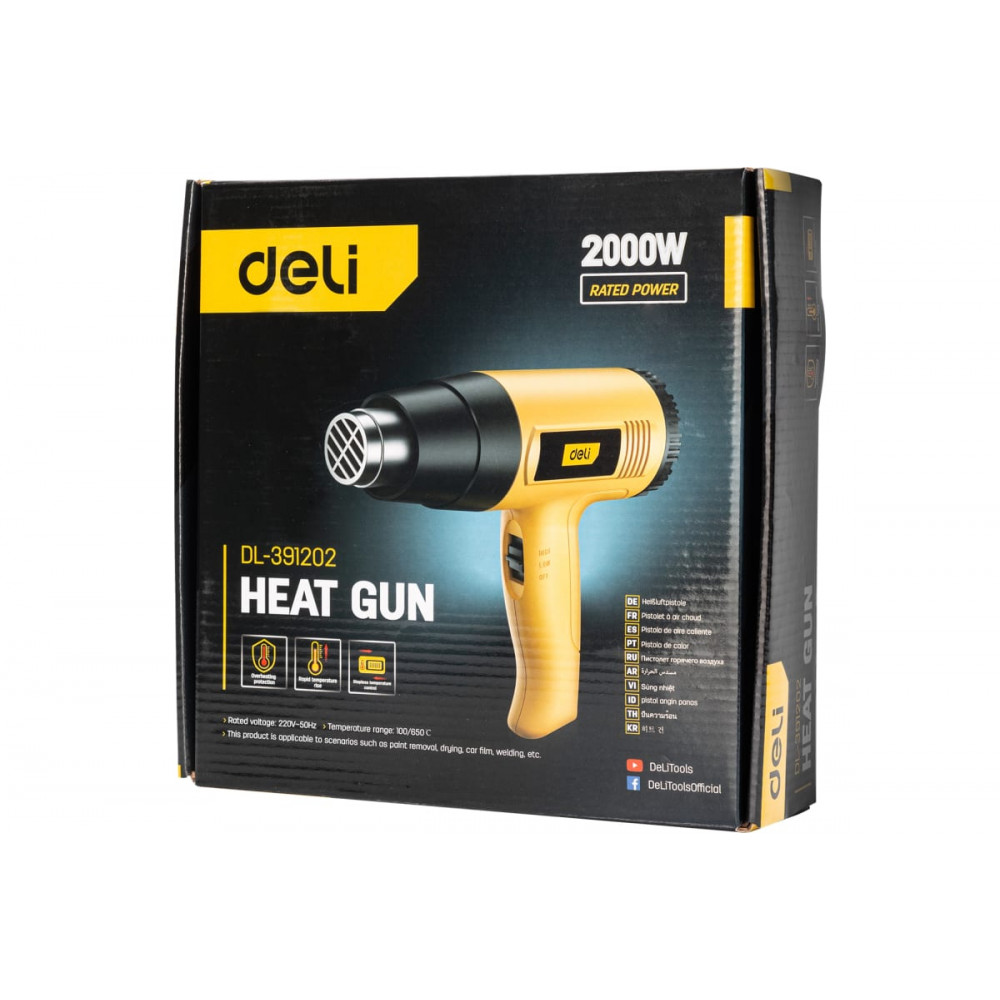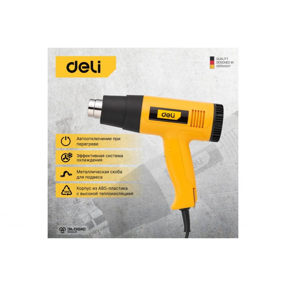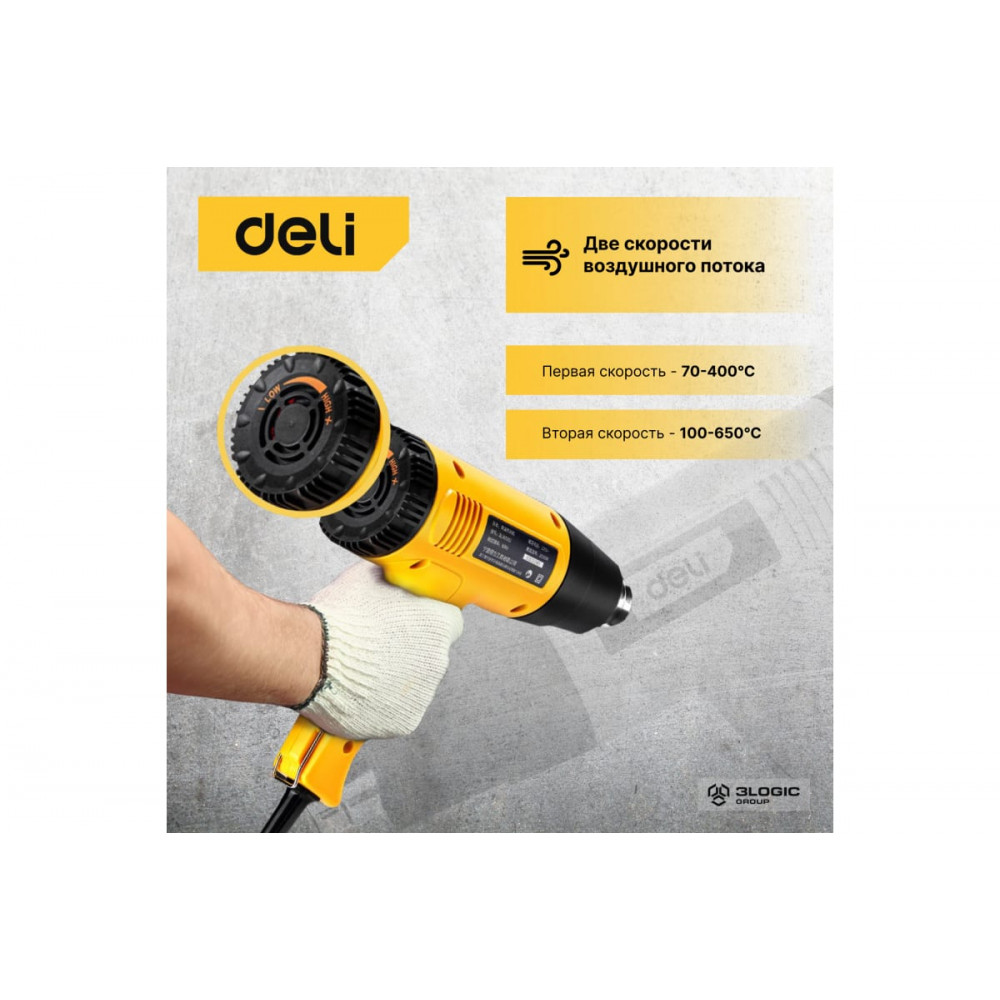Фен DL391202 технический 2000 Вт с бесступенчатой регулировкой температуры DELI