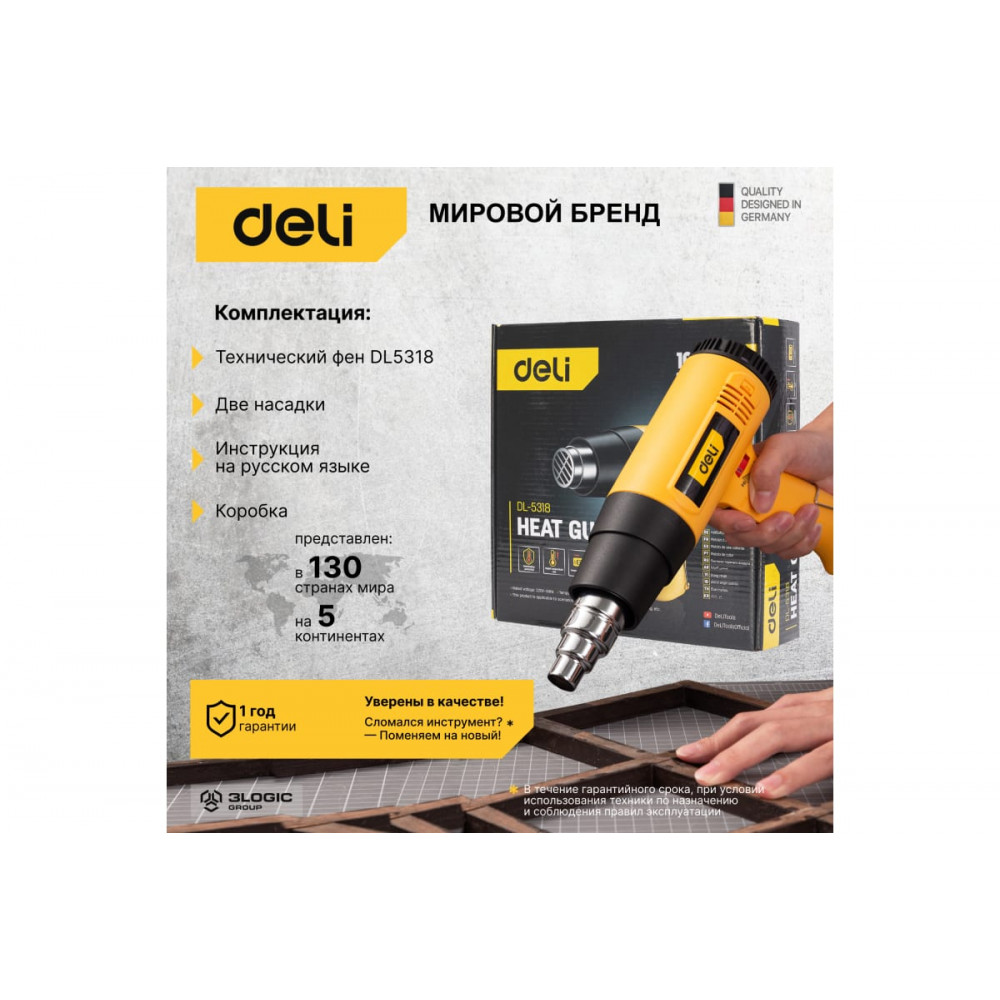 Фен DL5318 технический 1600 Вт с плавной регулировкой скорости DELI