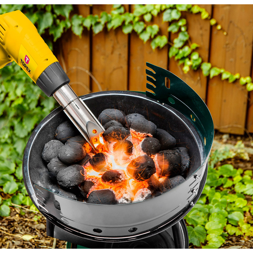 Термопистолет для разжигания барбекю 2000 Вт TOPEX сочетающий в себе термофен и специальную насадку позволяет быстро разжечь древесный уголь в барбекю. Благодаря термопистолету не потребуются химические жидкие и твердые средства розжига, и приготавливаемая пища будет здоровой и вкусной. Специально подобранные параметры и форма насадки позволяют разжечь барбекю за 60 секунд. Инструмент предназначен для тех, кто дорожит экологией и ищет экологически чистый и удобный способ розжига барбекю. После окончания сезона барбекю инструмент можно использовать в качестве обычного термофена. Бренд TOPEX предназначен для домашних мастеров.