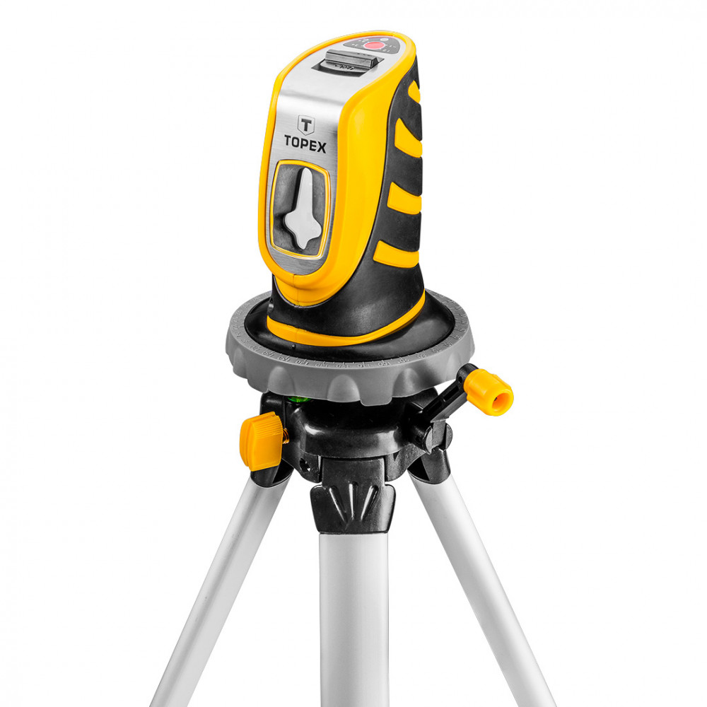 Самонивелирующийся лазерный прибор TOPEX с длиной лазерной волны 635 мм и диапазоном выравнивания < 6°. Применяется в строительных и отделочных работах. Возможность построения горизонтальной и вертикальной линии, а также перекрестных линий, при рабочем диапазоне до 10 м. Встроенный самонивелирующий механизм повышает комфорт пользования. Возможность фиксации основания значительно облегчает работу, благодаря этому после увеличения длины штатива можно заблокировать высоту основания так, чтобы она не менялась. В комплект входит штатив (тренога). Удобный пластмассовый чемоданчик облегчает транспорт и хранение. Бренд TOPEX предназначен для домашних мастеров.