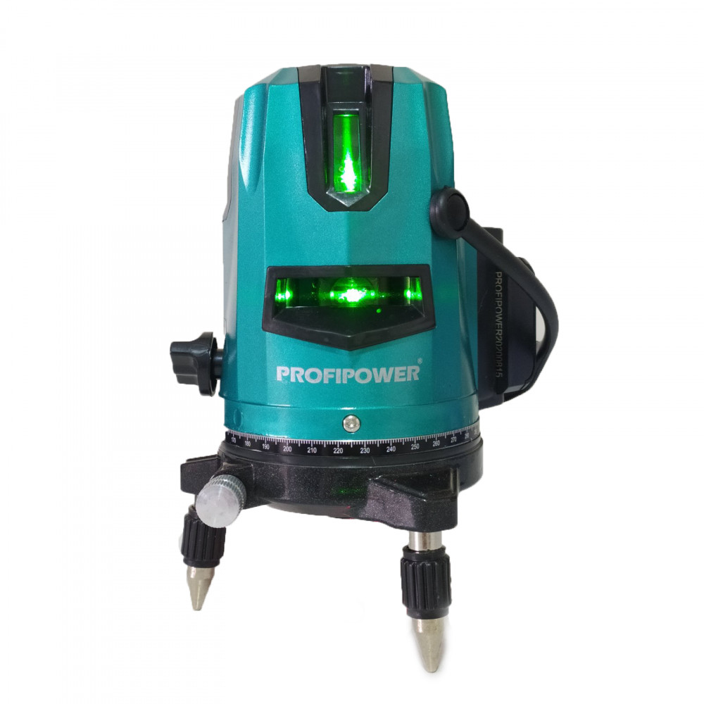 Уровень лазерный Зеленый E0057 3 луча Profipower В комплекте лазерный нивелир, кейс, большой акб, зу
