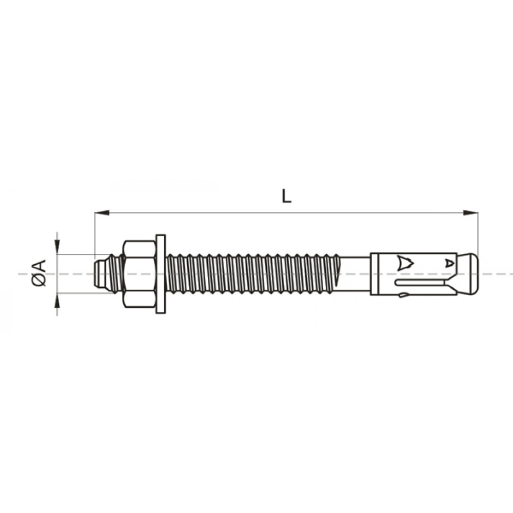 - Монтаж: сквозная установка: забивается молотком в предварительно просверленное отверстие в прикрепляемом материале и бетоне, а затем затягивается гайкой.