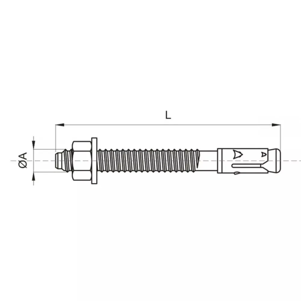 Особенности конструкции: с одной стороны анкер представляет собой шпильку с метрической резьбой с накручивающейся на неё гайкой, а с другой находится подвижная муфта, оснащённая внутренним конусообразным хвостовиком, которая выполняет роль распорного узла, необходимого для фиксации.