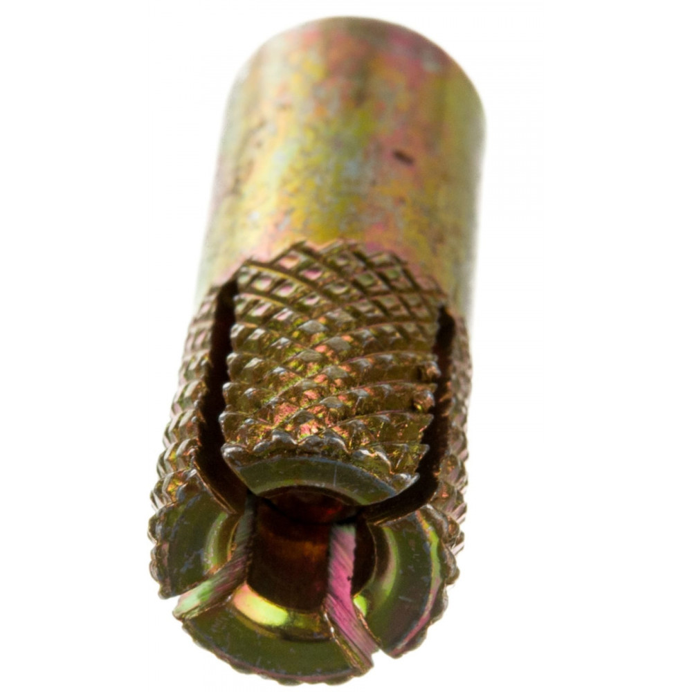 Монтаж: анкер устанавливается в предварительно просверленное отверстие, соответствующее диаметру и длине анкера, затем расклинивается распорным конусом при вворачивании в анкер металлического элемента (болта, шпильки).