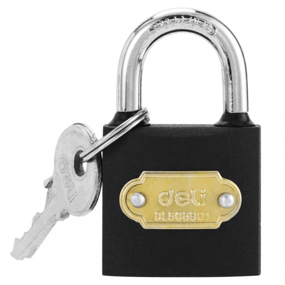Замок навесной DL508901 от Deli является надежным средством защиты для подсобных помещений, гаражей, калиток, оконных решеток, почтовых ящиков и других объектов. Благодаря дужке из закаленной углеродистой стали и уплотнительным резиновым кольцам, замок обеспечивает высокую степень защиты от взлома и воздействия влаги.