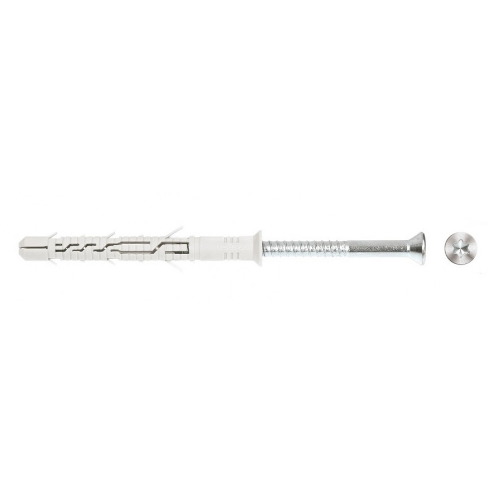 Распорные дюбели KPS-FAST поставляется с шурупом из низкоуглеродистой стали с цинковым покрытием. Используются в основном для крепления внешней отделки зданий. Кроме того, такой дюбель применяется при любой облицовке, монтаже теплоизоляции и металлических профилей, для монтажа деревянных конструкций и подвесных элементов. Может использоваться для таких оснований, как камень, бетон, ячеистый бетон, полнотелый и пустотелый кирпич. Конструкция состоит из цилиндрического анкера, снабженного удлиненными распорными лепестками, а также шурупа с потайной головкой. Небольшая и неприметная головка прекрасно подходит для фасадных, а также других облицовочных и монтажных работ, где важно скрыть наличие крепежей на внешней части элемента. Уменьшенная резьба гарантирует точную установку шурупа.