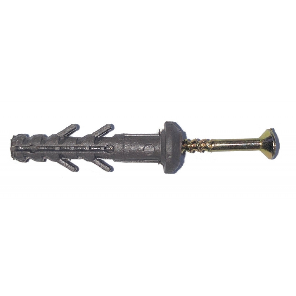 Главным преимуществом конструкции дюбель-гвоздя является специальный бортик у шляпки, благодаря которому плоские элементы прижимаются к основанию. Именно поэтому данный вид крепежа часто используется при монтаже кабелей и проводов. Использование дюбель-гвоздей с грибовидным бортиком удобно и экономично, так как не требует покупки и монтажа специальных прижимных элементов – шайб, рондолей. Также данный дюбель-гвоздь применяется для монтажа различных конструкций, на которые уже нанесена заводская перфорация. Материал дюбеля – полипропилен, который обладает неплохими прочностными характеристиками. Материал шурупа – оцинкованная сталь. Крестообразный шлиц облегчает демонтаж соединения.