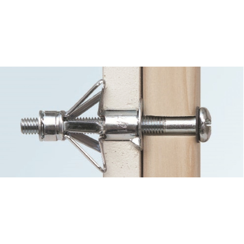 Дюбель Молли используют для крепления несъемного навесного оборудования к пустотелым материалам, таким как гипсокартон или фанера. Широко используется в быту для крепления различных декоративных и других принадлежностей. Материал дюбеля и винта – сталь с цинковым покрытием белого цвета. Острые зазубрины предотвращают проворачивание гильзы анкера в процессе установки, обеспечивая надлежащий монтаж.