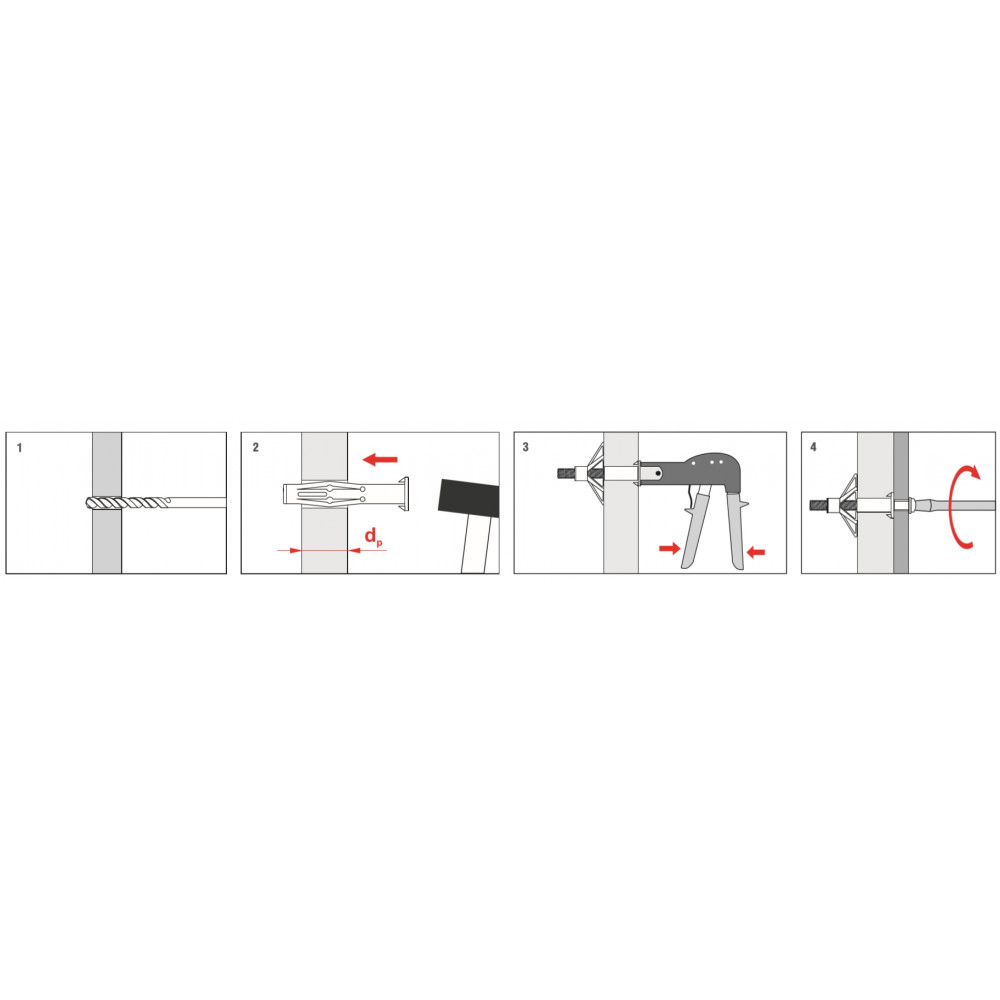 - Осадку дюбеля в отверстии следует осуществлять легкими ударами молотка.