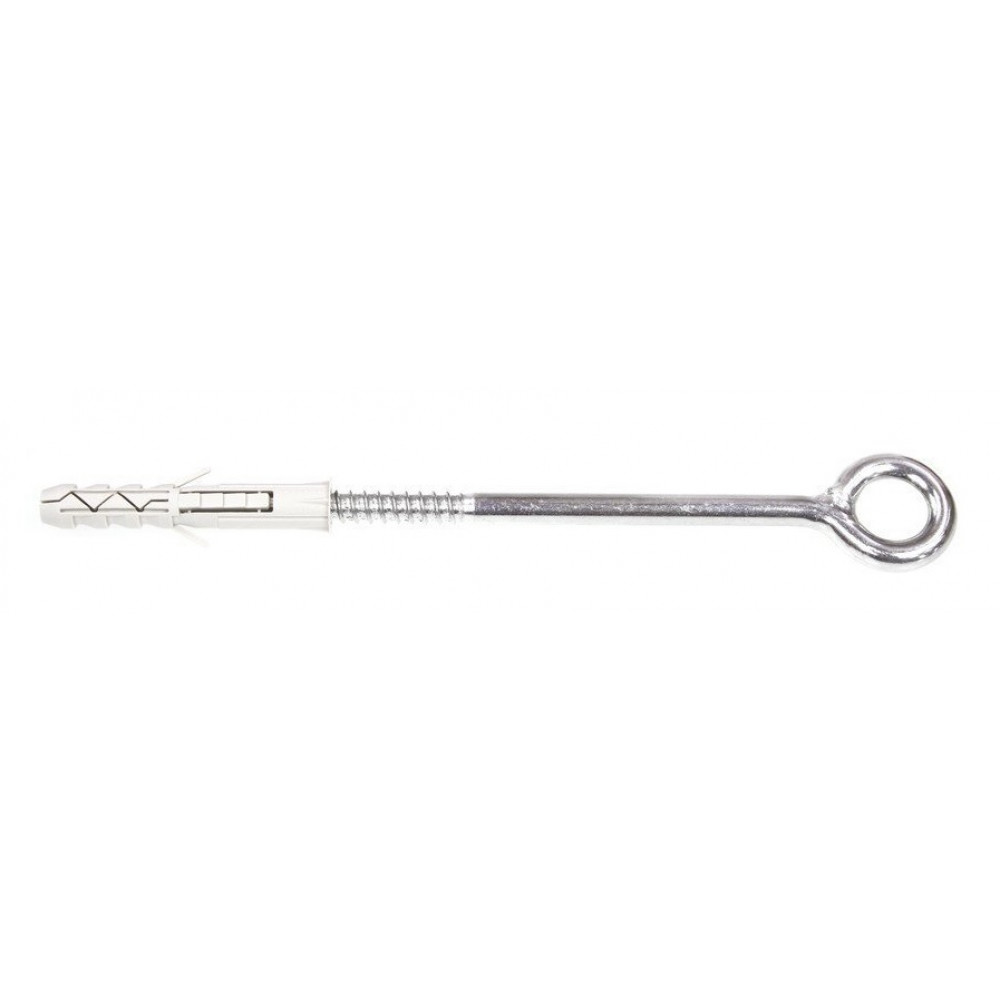 Распорный дюбель с крюком HOX состоит из дюбеля марки KNX и шурупа, имеющего на конце петлеобразный крюк. Сам дюбель выполнен из прочного пластикового материала – нейлона, который способен выдерживать большие нагрузки. Крюк с петлей сделан из стали, покрытой хромированным оцинкованным материалом белого цвета. Применяется для крепления строительных лесов, цепей, канатов, подвешивания спортивного инвентаря, качелей, потолочных светильников к полнотелым основаниям – камень, кирпич, бетон. Рифленая поверхность и имеющиеся усики позволяют прочно и надежно зафиксировать любые конструкции, так как прочно сцепляются с поверхностью отверстия. Крюк с петлей из этого комплекта может использоваться многократно, только нужно приобрести для него отдельный дюбель. Материал дюбеля – нейлон. Материал винта крюка – низкоуглеродистая сталь с цинковым покрытием белого цвета.