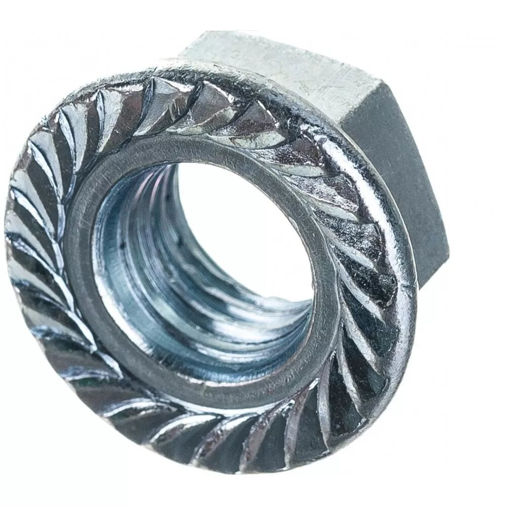 Особенности конструкции: наличие фланца избавляет от необходимости использовать дополнительные шайбы или гроверы, а рифленая поверхность фланца обеспечивает более прочное соединение с материалом и препятствует самопроизвольному раскручиванию соединения под действием динамических нагрузок или вибрации.