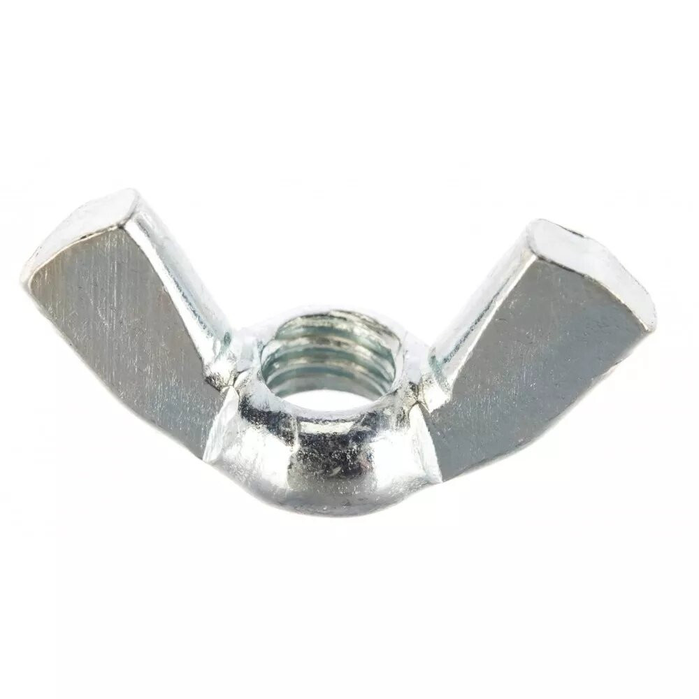 Особенности конструкции: гайка имеет выступающие по бокам два барашка, при помощи которых ее удобно закручивать или раскручивать вручную, без помощи инструмента.