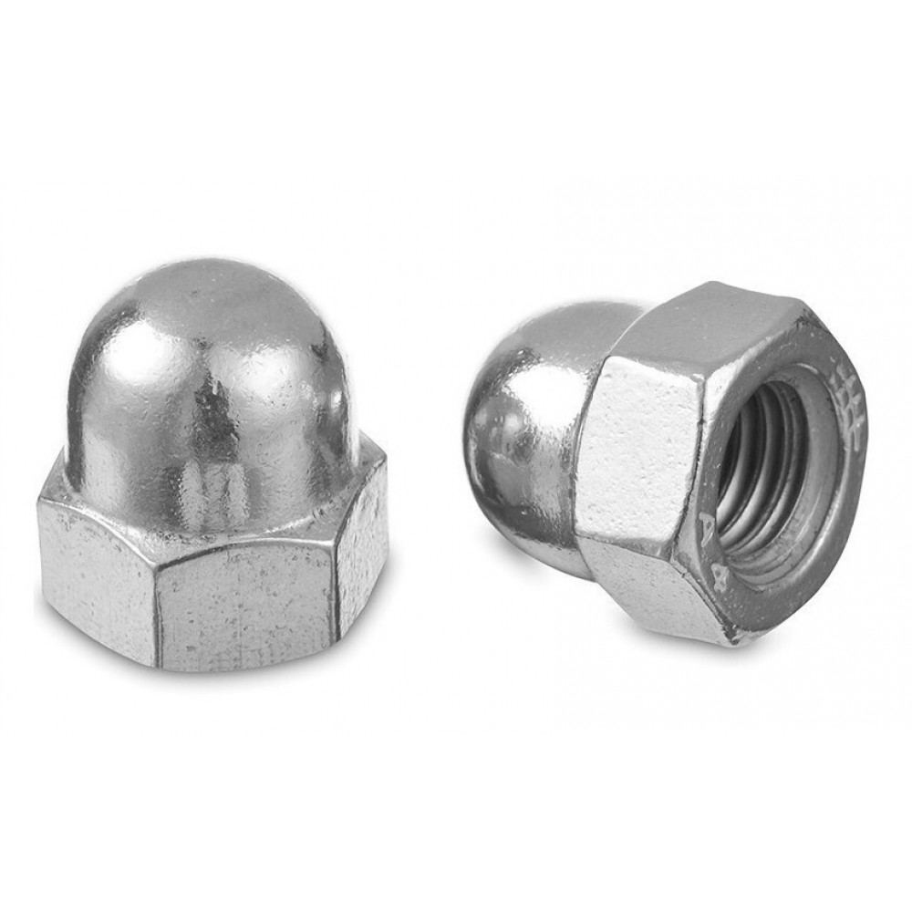 Особенности конструкции: крепежный элемент состоит из обычной шестигранной гайки с внутренней резьбой и сферического колпачка, который при накручивании на конец стержня крепежа полностью закрывает его.