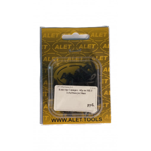 Саморез чёрный по металлу 3.5х25 мм, уп 50 шт. (блистер) 3,5 25 50