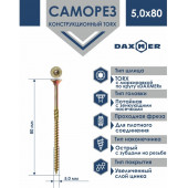 Саморез TORX 5,0х80 желтый универсальный, уп 200шт. Daxmer 5 80 200