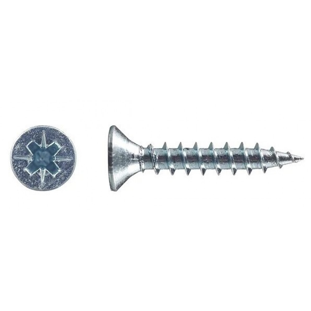 Данный саморез производятся из стали C1022 с белым оцинкованным покрытием, имеет шаг резьбы средний по частоте между редким и частым шагом. Головка потайная с крестообразным шлицем PZ, которая полностью утапливается в материале. Острый наконечник легко монтируется посредством электроинструмента (шуруповерта).