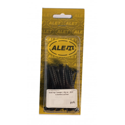 Саморез чёрный по дереву 3.8х64 мм, уп 25шт. (блистер) 3,8 64 25