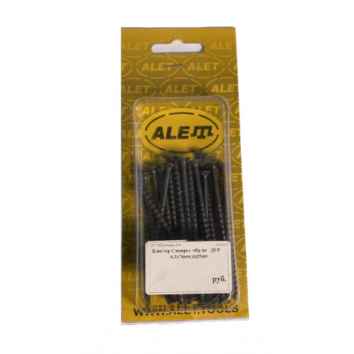 Саморез чёрный по дереву 4.2х76 мм, уп 25шт. (блистер) 4,2 76 25