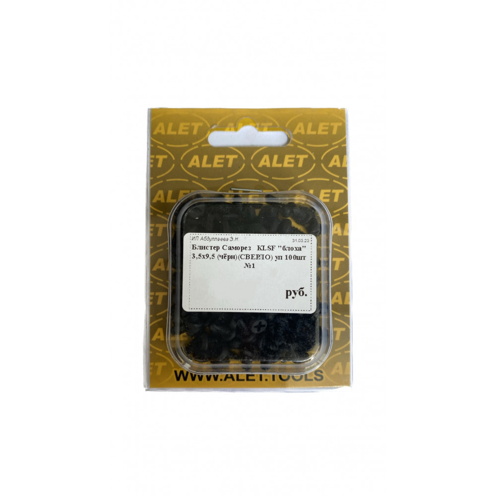 Саморез "блоха" 3,5х9,5 мм чёрный со сверлом, уп 100шт. (блистер)