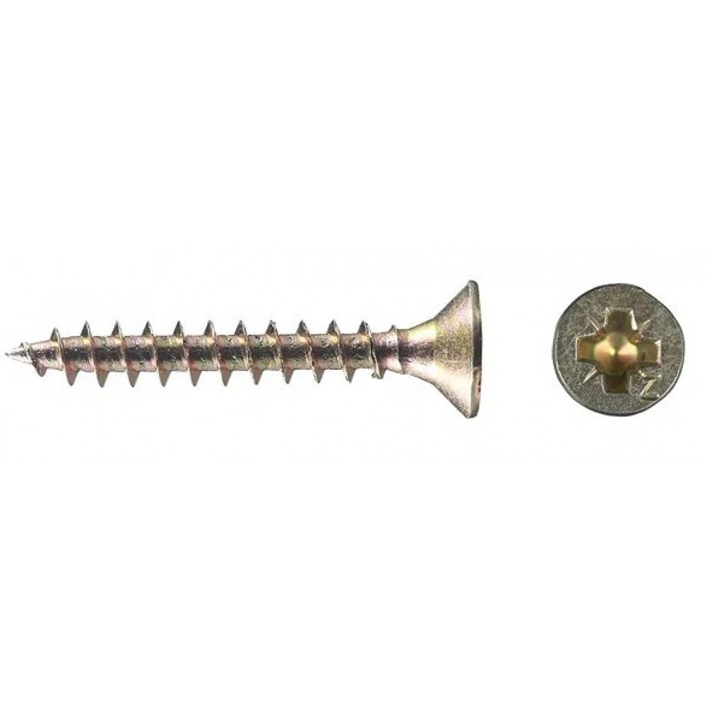 Данный саморез производятся из стали C1022 с желтым оцинкованным покрытием, имеет шаг резьбы средний по частоте между редким и частым шагом. Головка потайная с крестообразным шлицем PZ, которая полностью утапливается в материале. Острый наконечник легко монтируется посредством электроинструмента (шуруповерта).