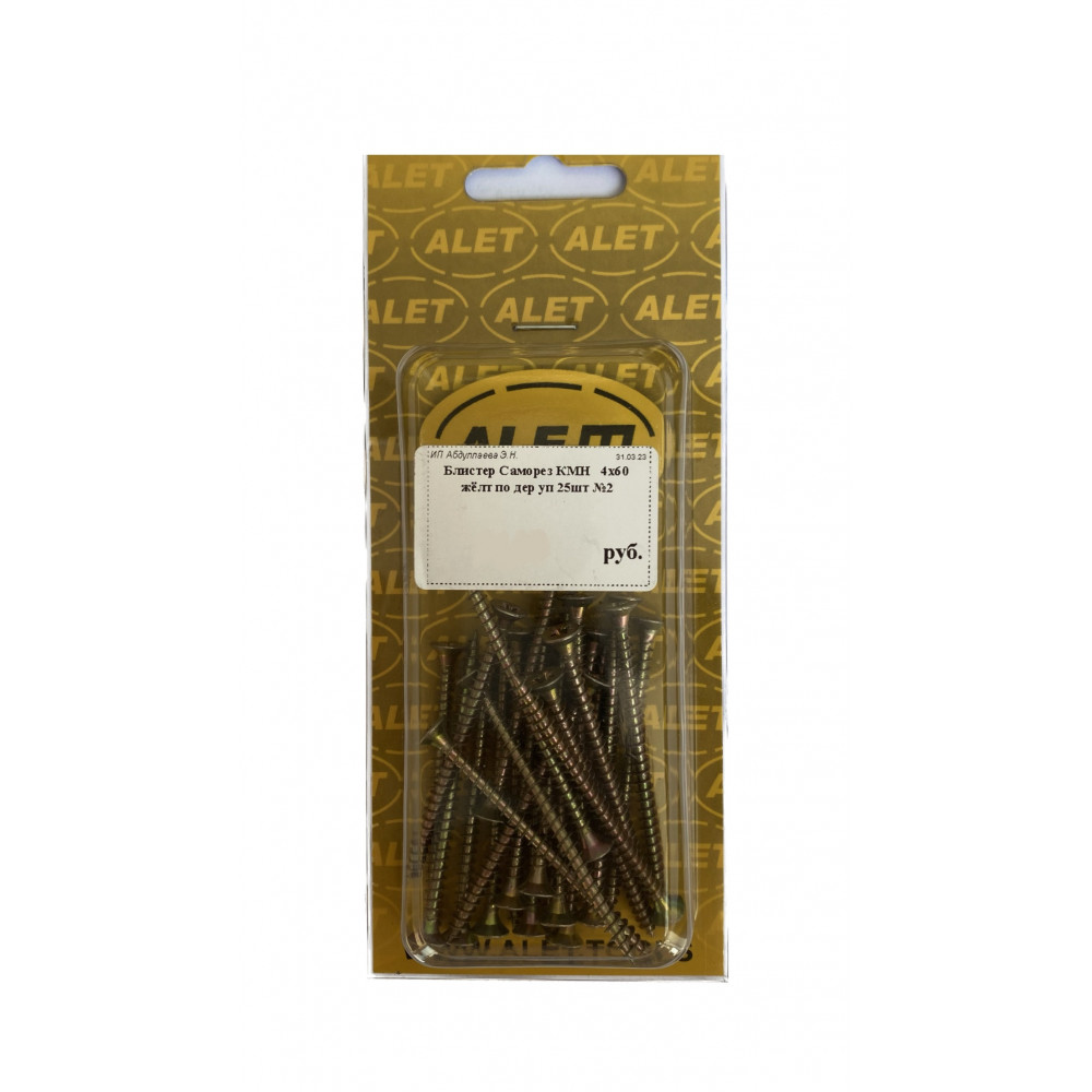 Саморез 4х60 жёлтый универсальный, уп 25шт (блистер)