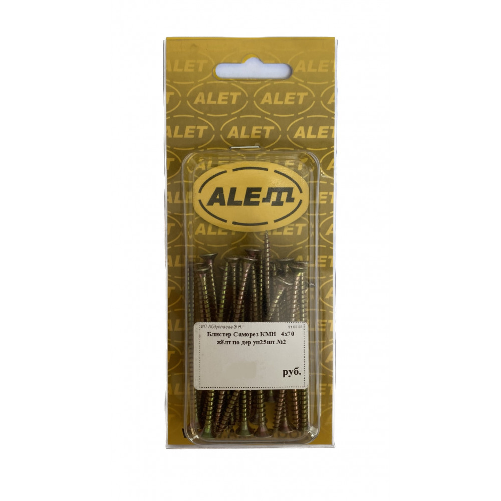 Саморез 4х70 жёлтый универсальный, уп 25шт. (блистер)