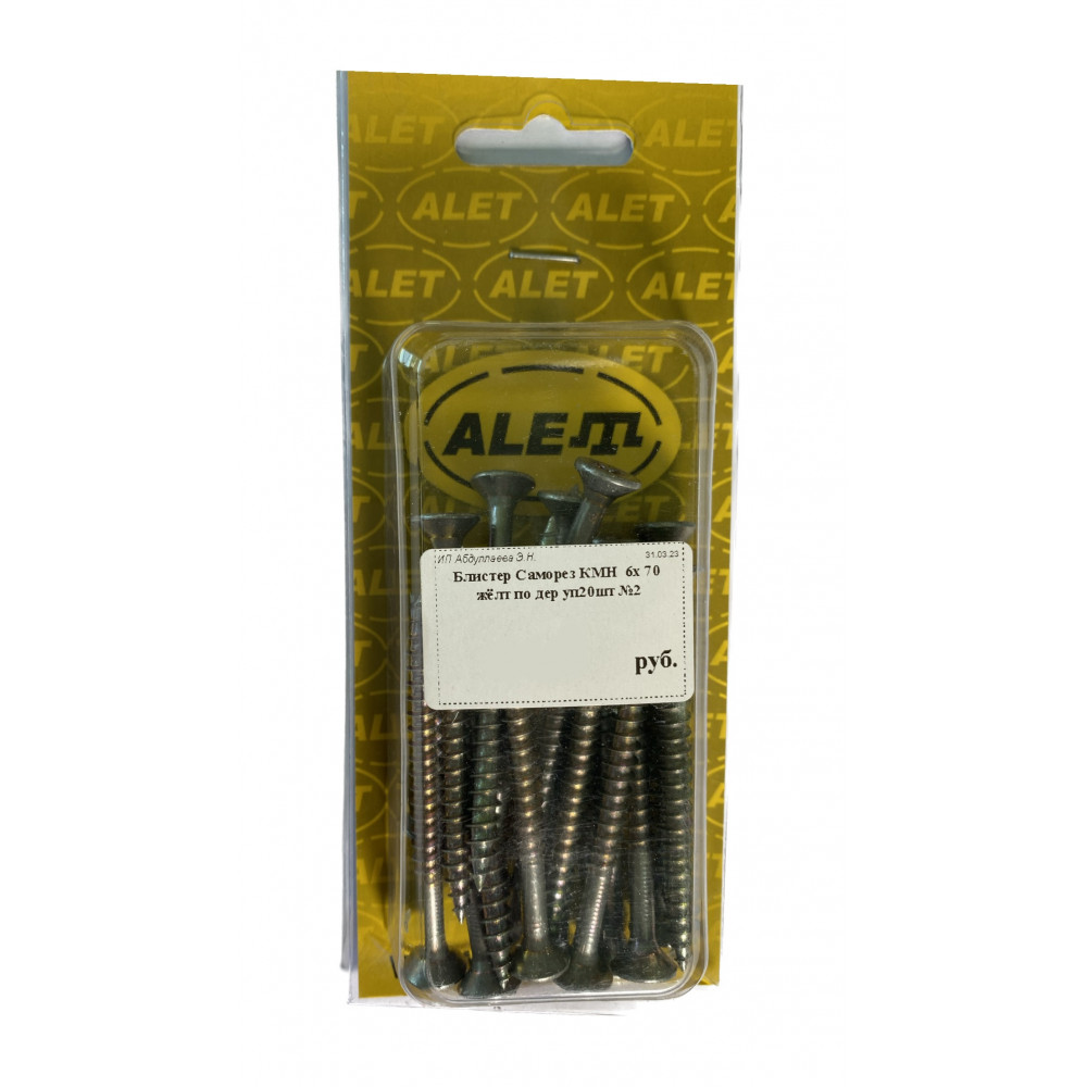 Саморез 6х70 жёлтый универсальный, уп 20шт. (блистер)