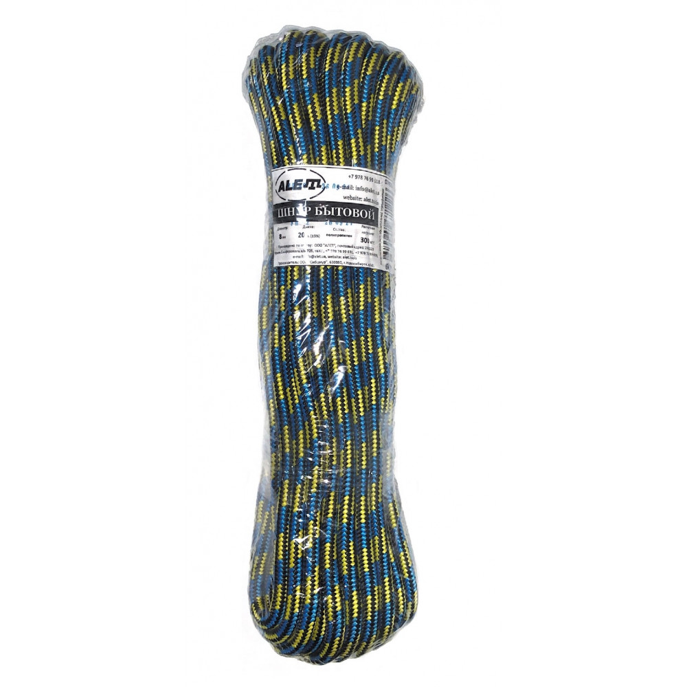 Бытовой полипропиленовый шнур — это плетеное изделие многократного применения из полипропиленовой мультифиламентной нити. Полипропилен — материал, обладающий наименьшей из всех пластмасс плотностью (0,91 г/см3), но при этом он более твёрдый (стоек к истиранию), более термостойкий (начинает размягчаться лишь при температуре 140°C, а температура его плавления 175 °C) и почти не подвергается коррозионному растрескиванию. Изделия из полипропилена выдерживают кипячение, и могут подвергаться стерилизации паром без какого-либо изменения их формы или механических свойств. Полипропилен — водостойкий материал. Даже после полугодового контакта с водой при комнатной температуре, его водопоглощение составляет менее 0,5 %. Еще одно важное преимущество полипропиленового сырья — его невысокая стоимость. Таким образом он является одновременно легким, прочным, износостойким, а также весьма недорогим изделием, удовлетворяющим практически всем требованиям современного потребителя.