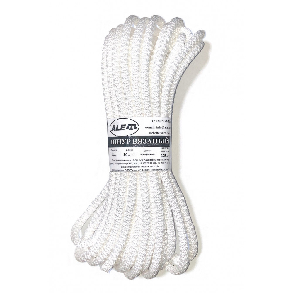 Шнур вязаный полипропиленовый — самый недорогой из всех видов выпускаемой шнуров. Изготавливается из мультифиламентной полипропиленовой нити. Основные характеристики вязаного шнура — это высокая эстетичность в силу применения цветной нити, гибкость, эластичность, легко вяжется в узлы. Шнур мягкий, но достаточно прочный, не разрушается от воздействия ультрафиолетовых лучей.