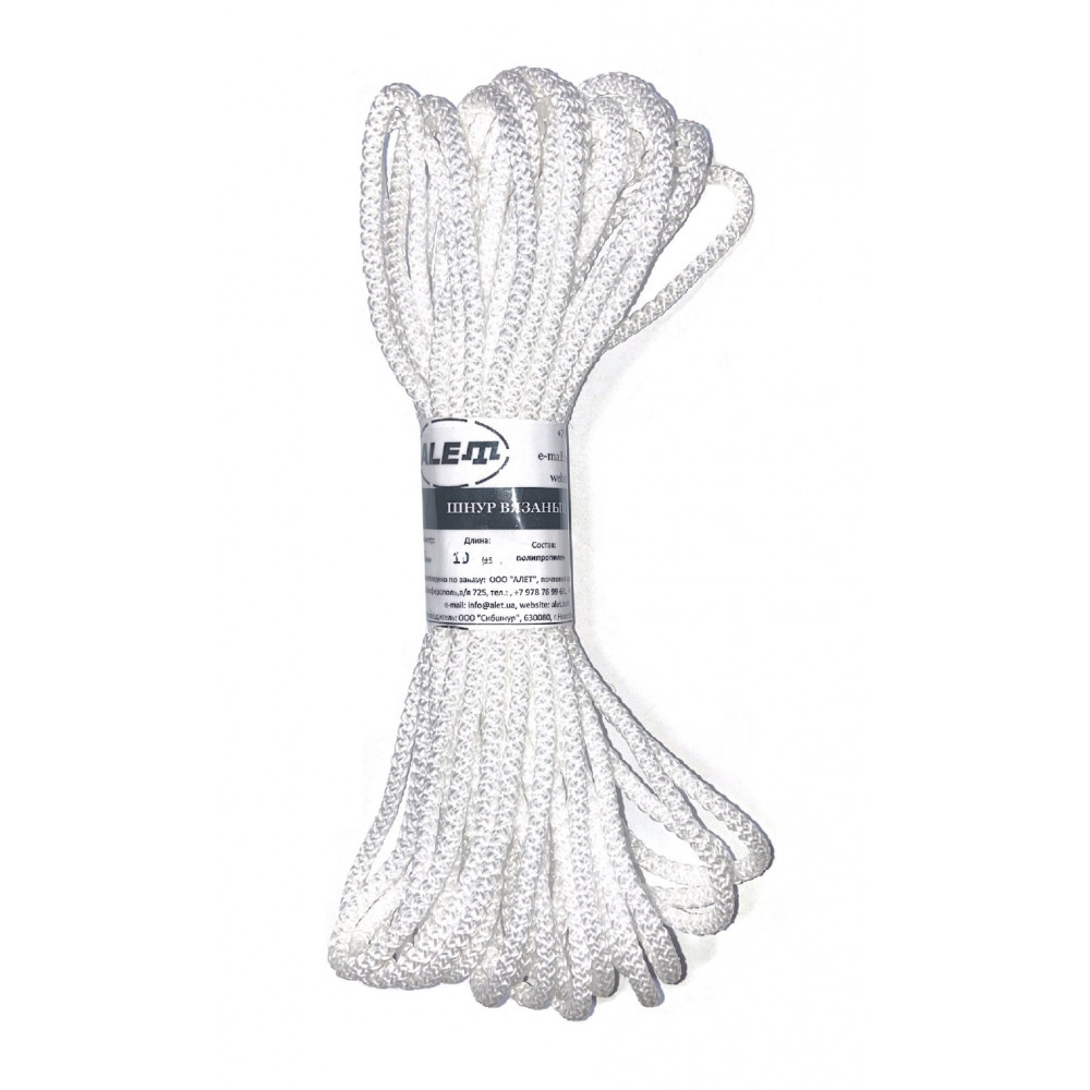 Шнур вязаный 5 мм, 20 м, белый ALET