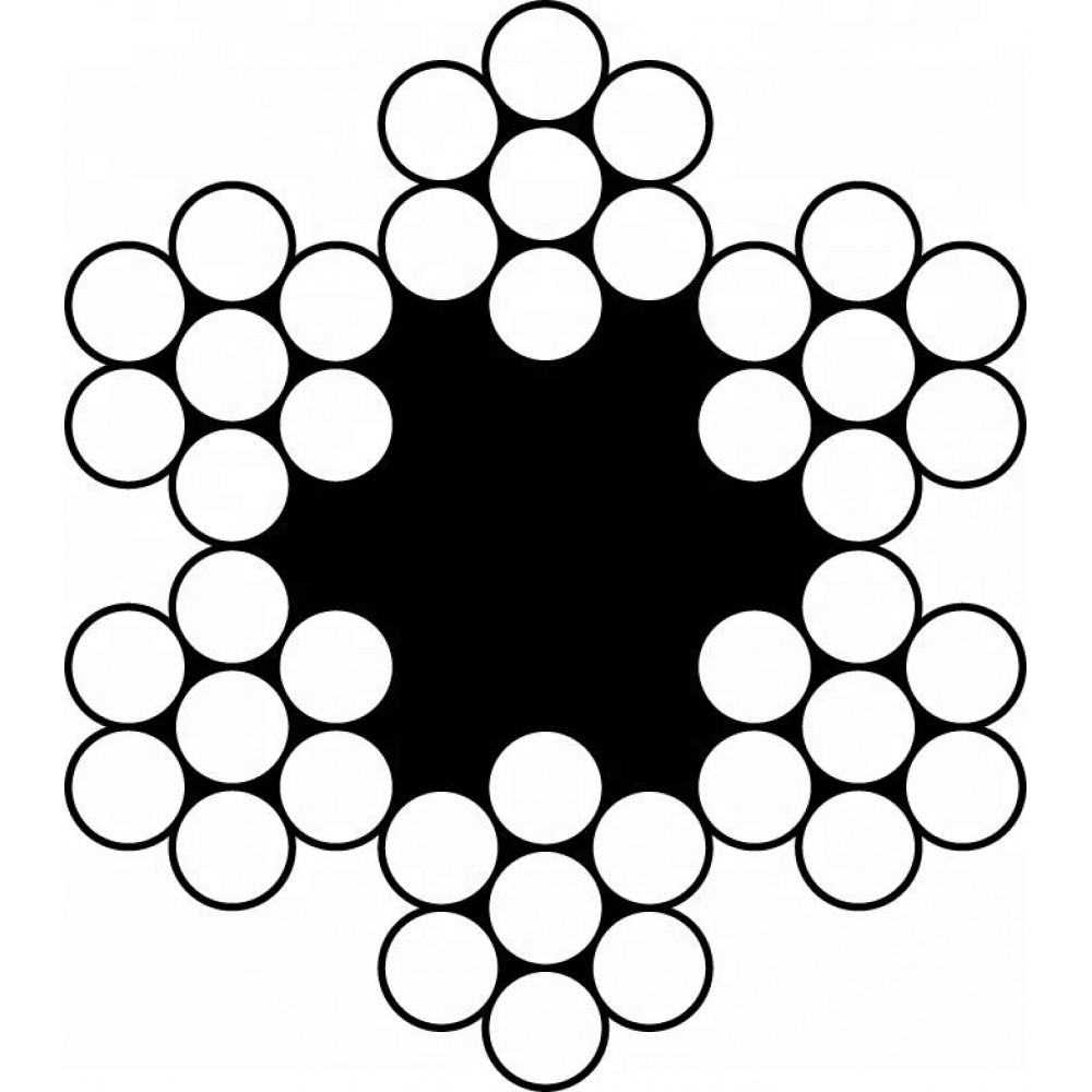 Особенности конструкции: в зависимости от конструкции, трос имеет различную гибкость и коэффициент растяжения. Конструктивно трос изготовлен из высокопрочной проволоки и сердечника. Проволоку обвивают вокруг сердечника и получают прядь, пряди в свою очередь тоже обвивают вокруг сердечника и получают трос. Трос без оплетки.
